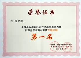 2012年獲得第三屆全國印刷行業(yè)職業(yè)職能大賽(四川賽區(qū))選拔賽平版印刷類二等獎